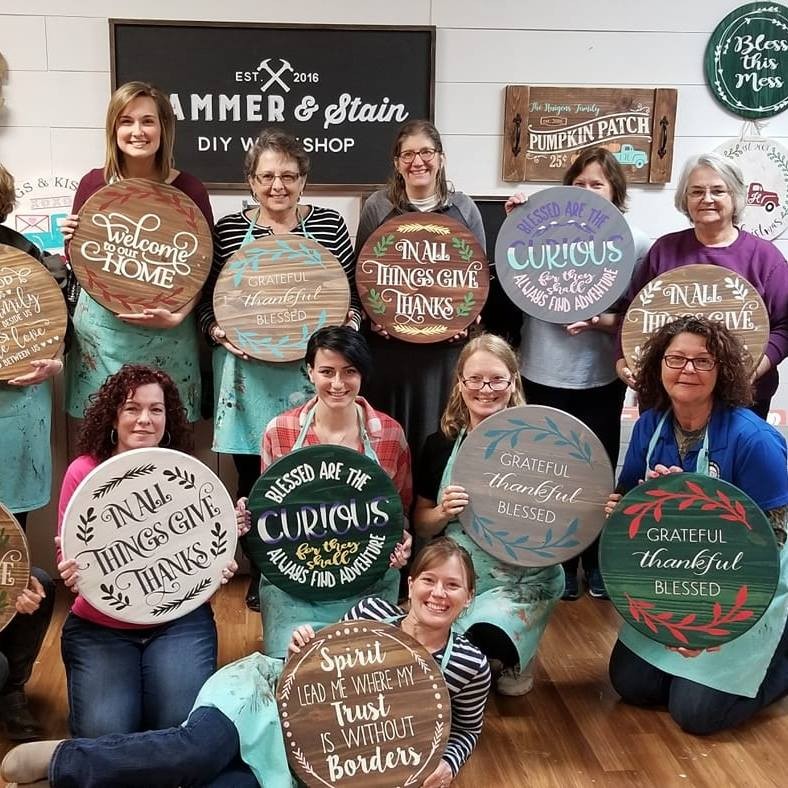 Offering Public Workshops, Private Parties, or walk-in daytime crafting. Projects include: wall signs, yard games, Pallets, Porch Decor, Chunky and more.