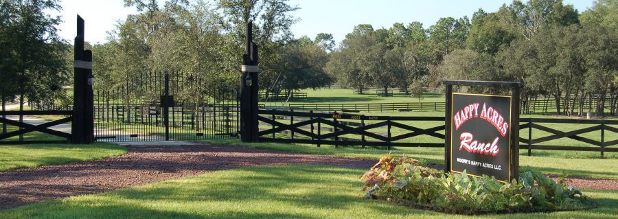 Happy Acres Ranch is a working ranch of 30 acres located in the southwest corner of Marion County and is owned by James B. Moore. The ranch provides sales and services primarily involving horses in such settings as, boarding & cottages.