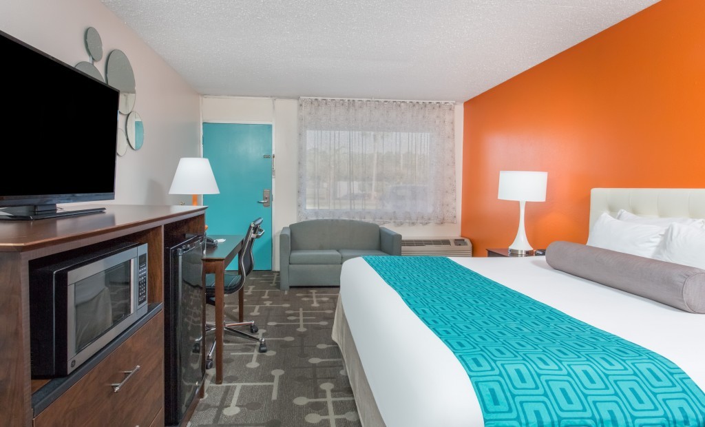 This hotel is in a prime location for families and corporate travelers. The Holiday Inn Express is very family friendly with its heated outdoor saltwater pool, complimentary high speed Wi-Fi, breakfast, mini golf course, room service, and within minutes from Bubba Raceway Park, HITS (Horses in the Sun), Ocala Breeder Sales, and local horse farm tours. This hotel is also great option for corporate travelers because of its on onsite fitness center, business center, and twenty four access to fresh brewed coffee, breakfast, large meeting space, and only forty minutes from the University of Florida.