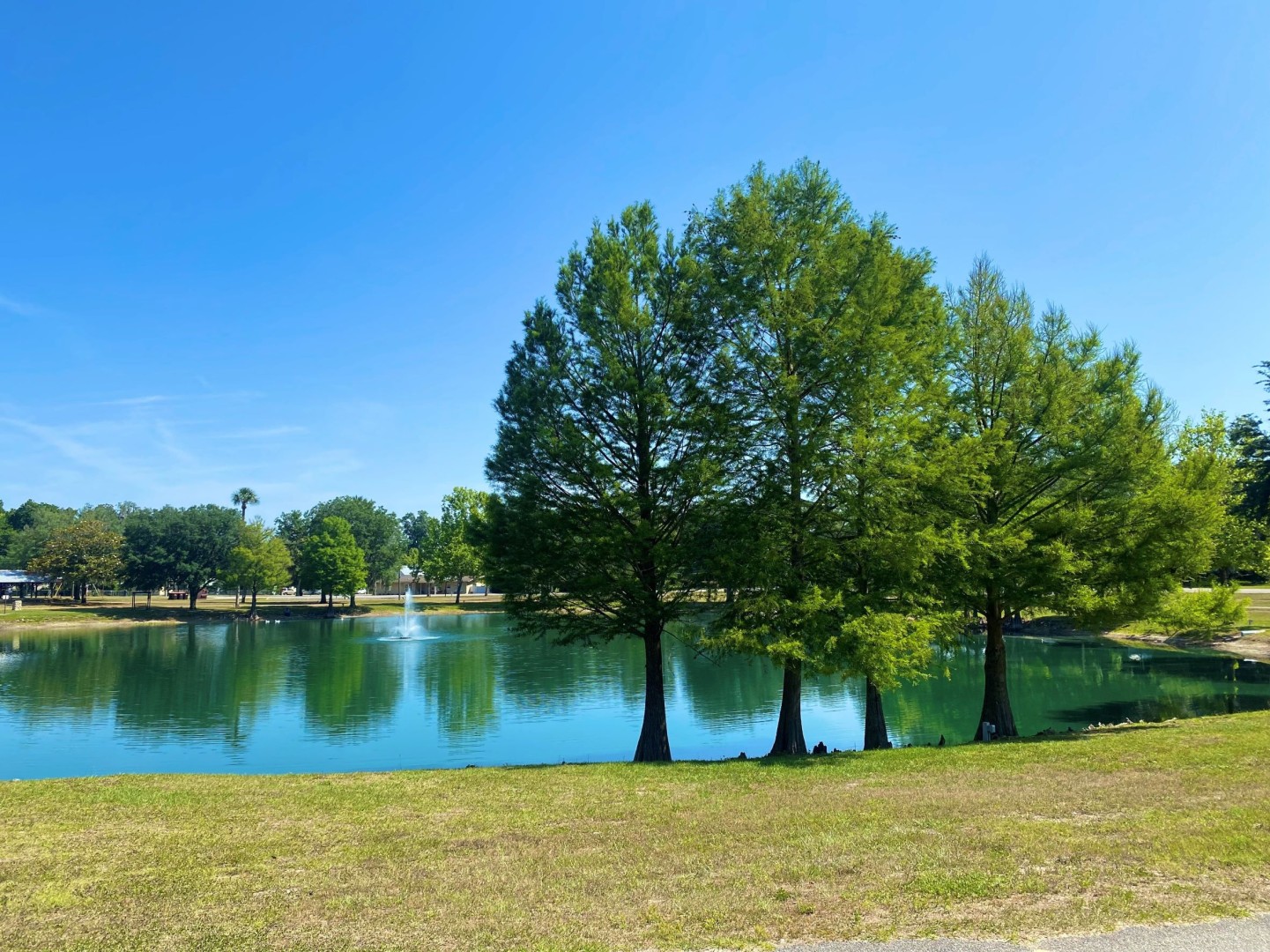 This is a Community Park with a playground, 3/4 mile paved walking trail and 1 mile dirt fitness trail, lake with dock, several mini pavilions and a large pavilion with picnic tables along with a stage and seating under trees by the fitness trail.