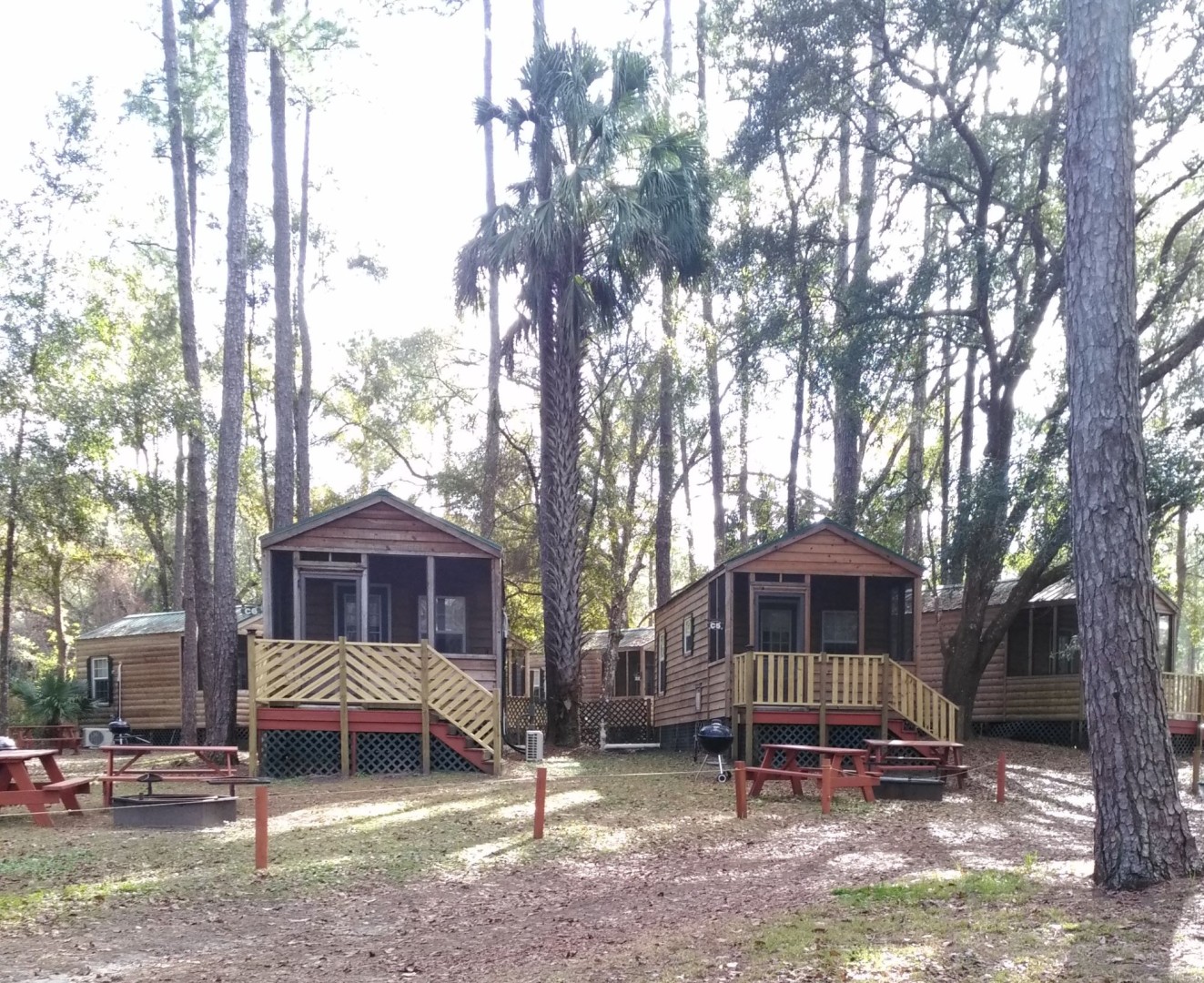 For accommodations, we offer fully furnished cabins with a rustic feel or chose a primitive tent site or bring your RV and enjoy our spacious RV sites on the fringe of the Ocala National Forest. In addition, we have a fishing pond, playground and recreation room.