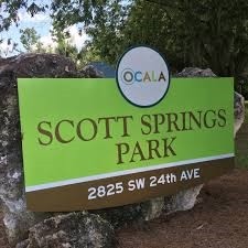 Scott Springs is a 21.68 acre city park located at: 2825 SW 24th Avenue, Ocala. It offers a bike trail, walking trail, boardwalk to the grotto, and playground. A great place for a picnic a bike ride or stroll and to let the kids run.