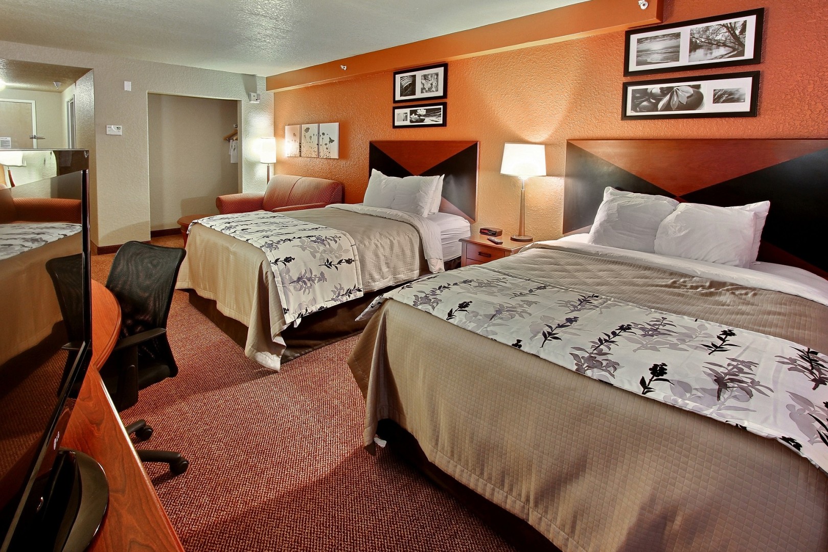 We designed each of our inviting, pet-friendly guest rooms with warm, modern design elements that help you relax after a long day. In your room, you’ll find thoughtful extras like a mini-fridge, microwave, coffee maker, iron and ironing board, and hairdryer.