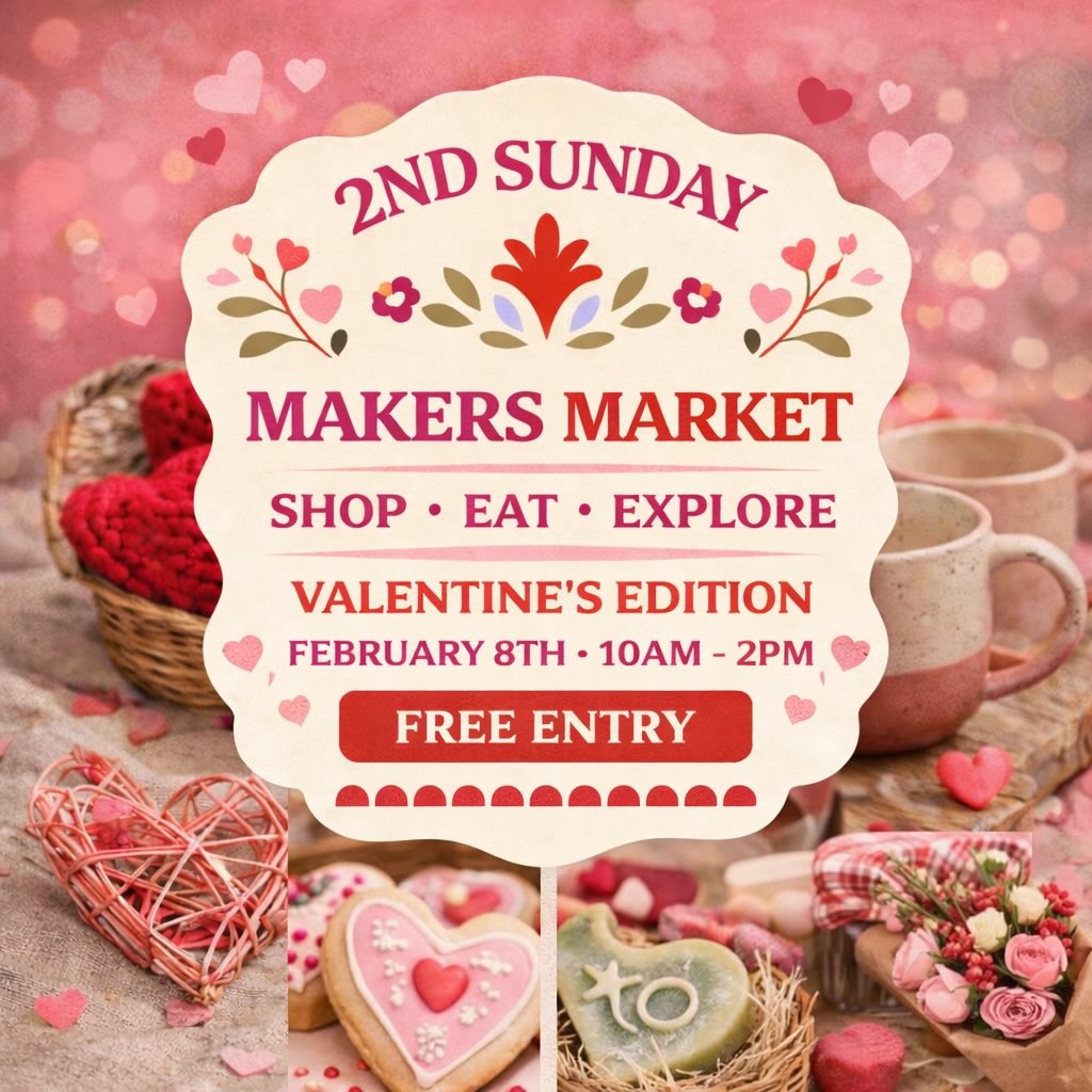 Join us for the February 2nd Sunday Makers Market Valentine’s Edition at the Heart of the Park! Stroll through a curated collection of local makers offering handmade goods, art, sweet treats, florals, gifts, and one-of-a-kind finds perfect for someone you love (or yourself ).