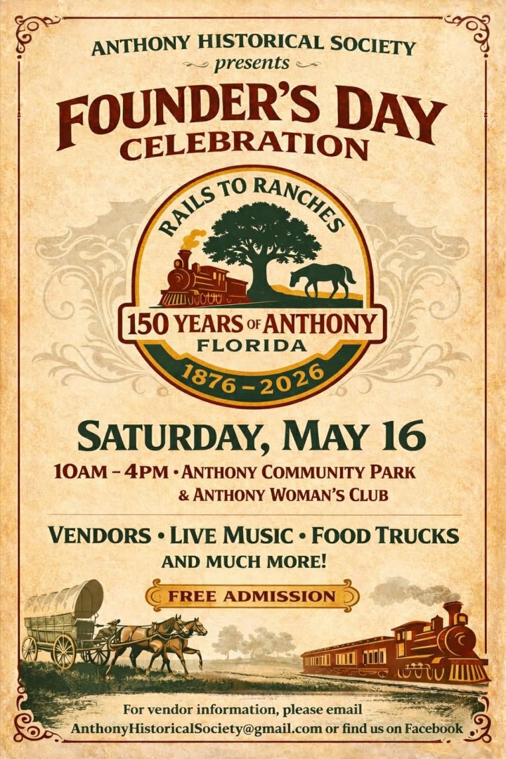 Join us as we celebrate Anthony Founder's Day Celebration of 150 years. There will be vendors, live music, food trucks, and much more!