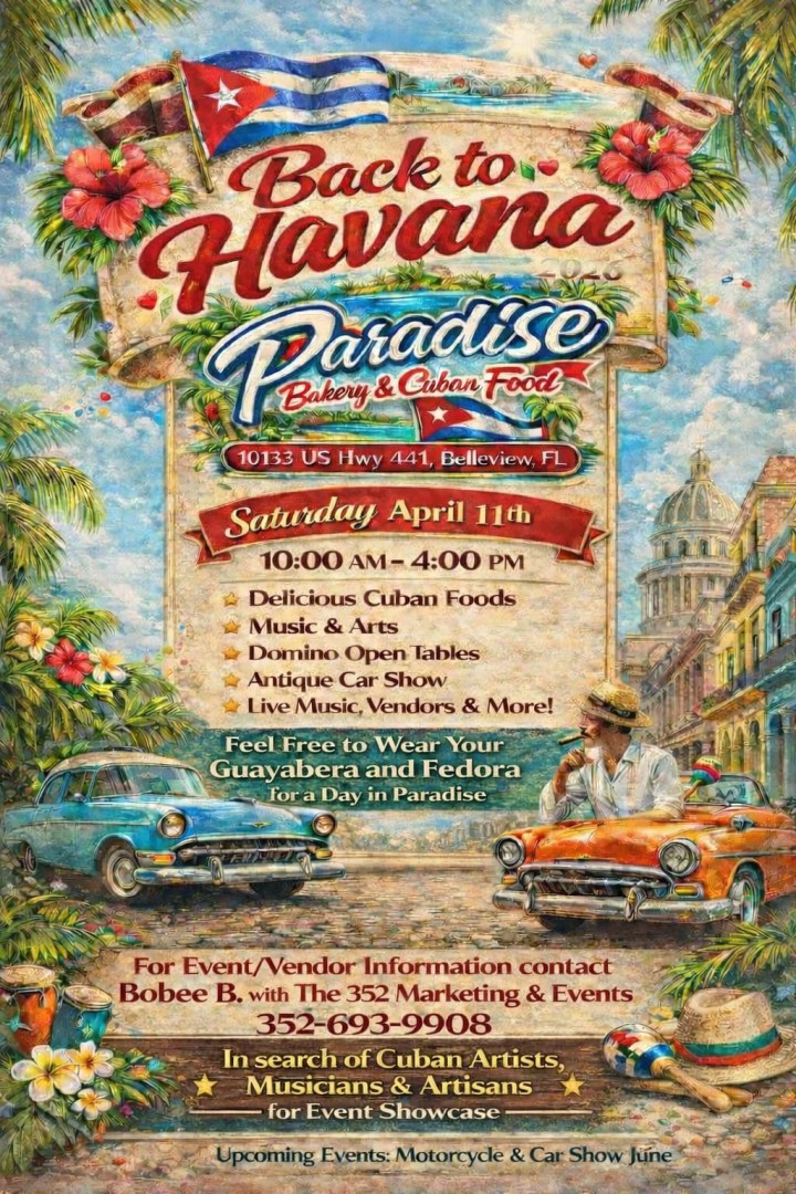 Delicious Cuban Foods, Live Music, Domino Open Tables, Antique Car Show, Vendors & More!