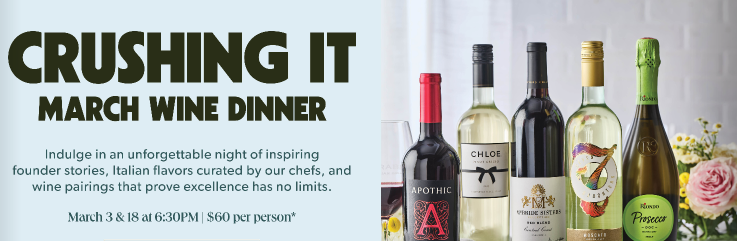This March, in honor of National Women’s History Month, we invite you to the return of our special five-course wine dinner celebrating those who strive for greatness. Featuring exceptional wines crafted by trailblazing female winemakers, this evening is a tribute to those who are — in every sense: crushing it. Indulge in an unforgettable night of inspiring founder stories, Italian flavors curated by our chefs, and wine pairings that prove excellence has no limits.
