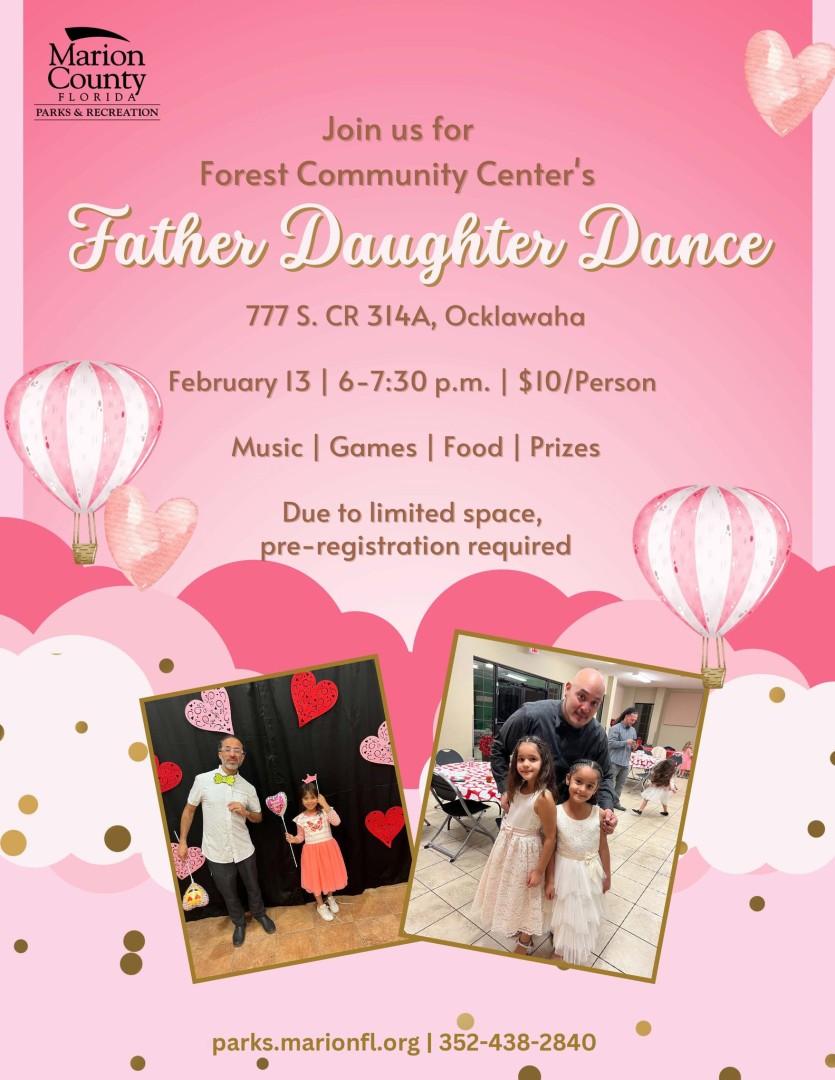 Be sure to join us for this year's Father-Daughter Dance at Forest Community Center.