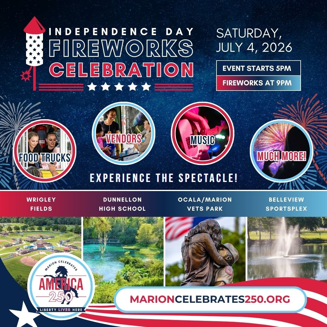 There will be 4 synchronized firework shows in Marion County on July 4th with events and festivities beginning at 5pm. This is one of the 4 shows.