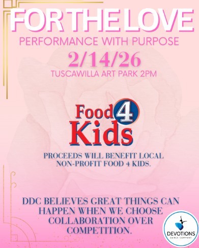 Fine Arts For Ocala and Devotions Dance Company are sponsoring For the Love: Performance with Purpose, a free performing arts event benefiting local non-profit Food 4 Kids. The event starts at 2p at Tuscawilla Art Park! Monetary and food donations will be accepted - peanut butter and jelly (plastic containers), canned chicken, vienna sausage, canned vegetables, fruit cups, applesauce, breakfast bars, oatmeal, ramen, & pudding cups. Please come and enjoy this special day of dance!