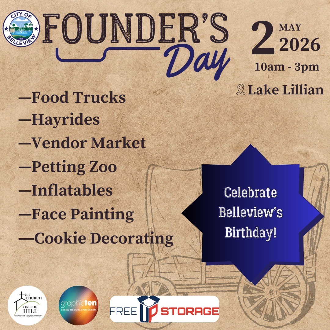 Our Annual Founder's Day will take place Saturday, May 2, 2026 between 10:00am - 3:00pm at Lake Lillian. Event attendees can enjoy a variety of craft, business, and food vendors! Free children's activities include games, crafts, and inflatables as well as activities and booths focusing on our city's history!
