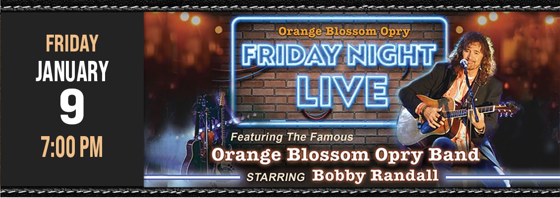 Friday Night Live at the Orange Blossom Opry Led by Nashville Recording Artist Bobby Randall, the Famous OBO Band features Doug Stock, Randy Nichols, Keith Horne, Dave Jaquez, and newest member Kitt Lange. Together, they deliver a powerhouse performance that blends Prime Country, Southern Rock, and the engaging energy that makes Friday Night Live a must-see every week.