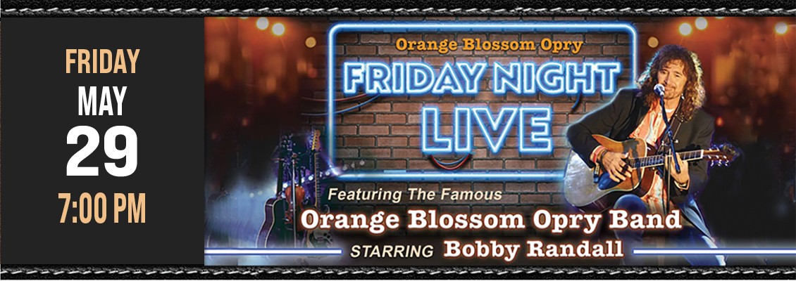 Friday Night Live at the Orange Blossom Opry Led by Nashville Recording Artist Bobby Randall, the Famous OBO Band features Doug Stock, Randy Nichols, Keith Horne, Dave Jaquez, and newest member Kitt Lange. Together, they deliver a powerhouse performance that blends Prime Country, Southern Rock, and the engaging energy that makes Friday Night Live a must-see every week.