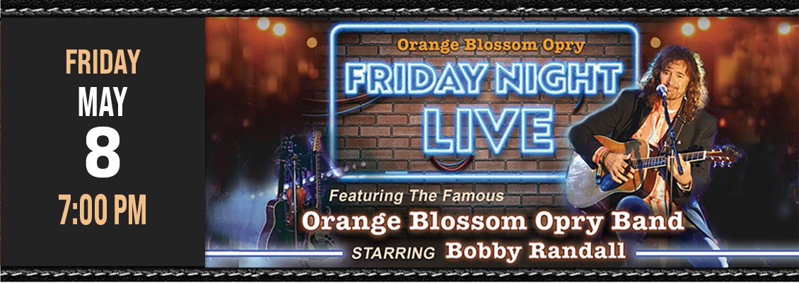 Friday Night Live at the Orange Blossom Opry Led by Nashville Recording Artist Bobby Randall, the Famous OBO Band features Doug Stock, Randy Nichols, Keith Horne, Dave Jaquez, and newest member Kitt Lange. Together, they deliver a powerhouse performance that blends Prime Country, Southern Rock, and the engaging energy that makes Friday Night Live a must-see every week.