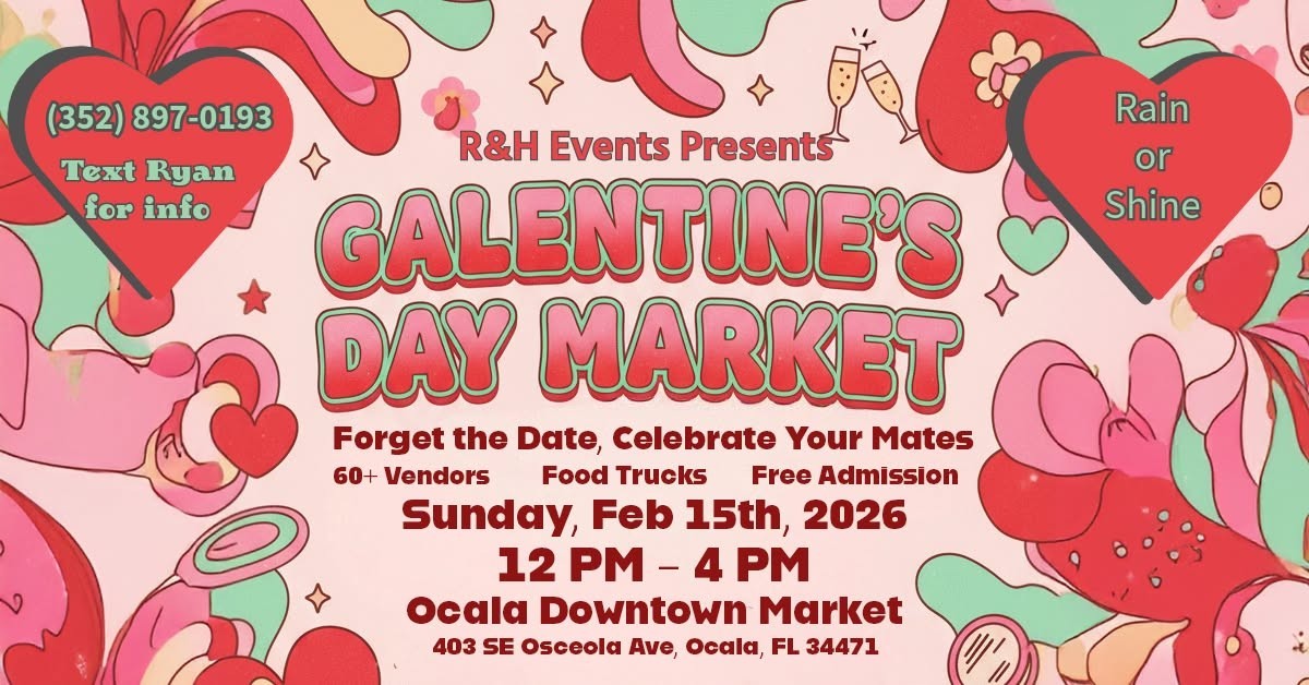 Whether you’re celebrating true love, friendship, or just treating yourself, join us for the grooviest Galentine's Day Craft Fair at the Ocala Downtown Market! This is the ultimate celebration of friendship, community, and finding the perfect gift.