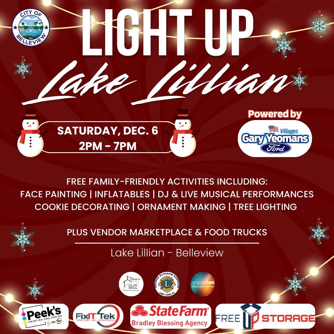 The City of Belleview is proud to welcome the community to our annual holiday celebration on Saturday, December 6, 2025, from 2–7 PM at Lake Lillian. This free, family-friendly event is filled with festive activities, live music, shopping, food, a meet & greet with Santa, and the traditional lighting of the trees!