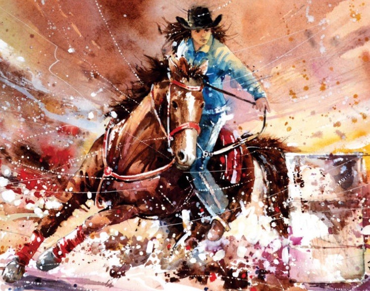 Barrel racing is a rodeo event that is known for quick turns, high speeds, and edge-of-your-seat excitement. Like other timed events, the winner of the barrel race is determined by thousandths of a second! The barrels are placed in a triangle shape with the base closest to the alleyway. Barrel racers enter the arena at a full run, speeding towards the first barrel, choosing to go either right or left. After making a tight and complete circle around the first barrel, the rider must then race on to the second and third barrel to complete the cloverleaf pattern. Finally, the rider and horse bolt towards the finish line in hopes of stopping the clock with the fastest time!