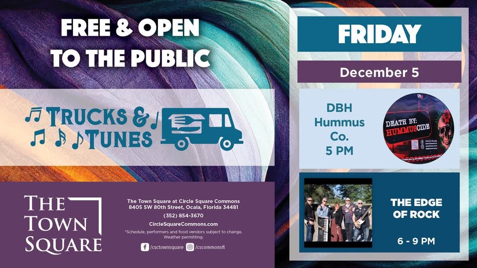 Free and open to the public (weather permitting). Coolers and well-behaved leashed pets are permitted outside at The Town Square.