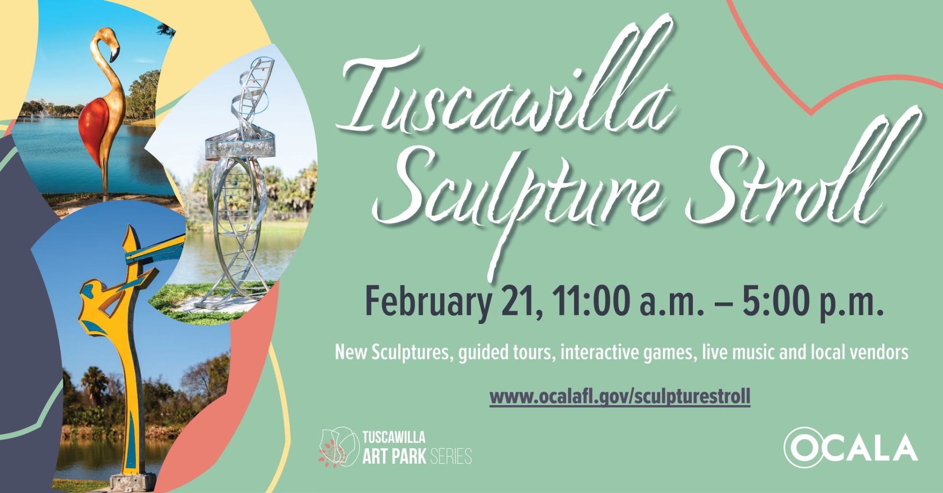 Come celebrate the ten, newly installed sculptures from the 2026-2027 Ocala Outdoor Sculpture Competition at the Tuscawilla Sculpture Stroll! This is a FREE event open to the public.